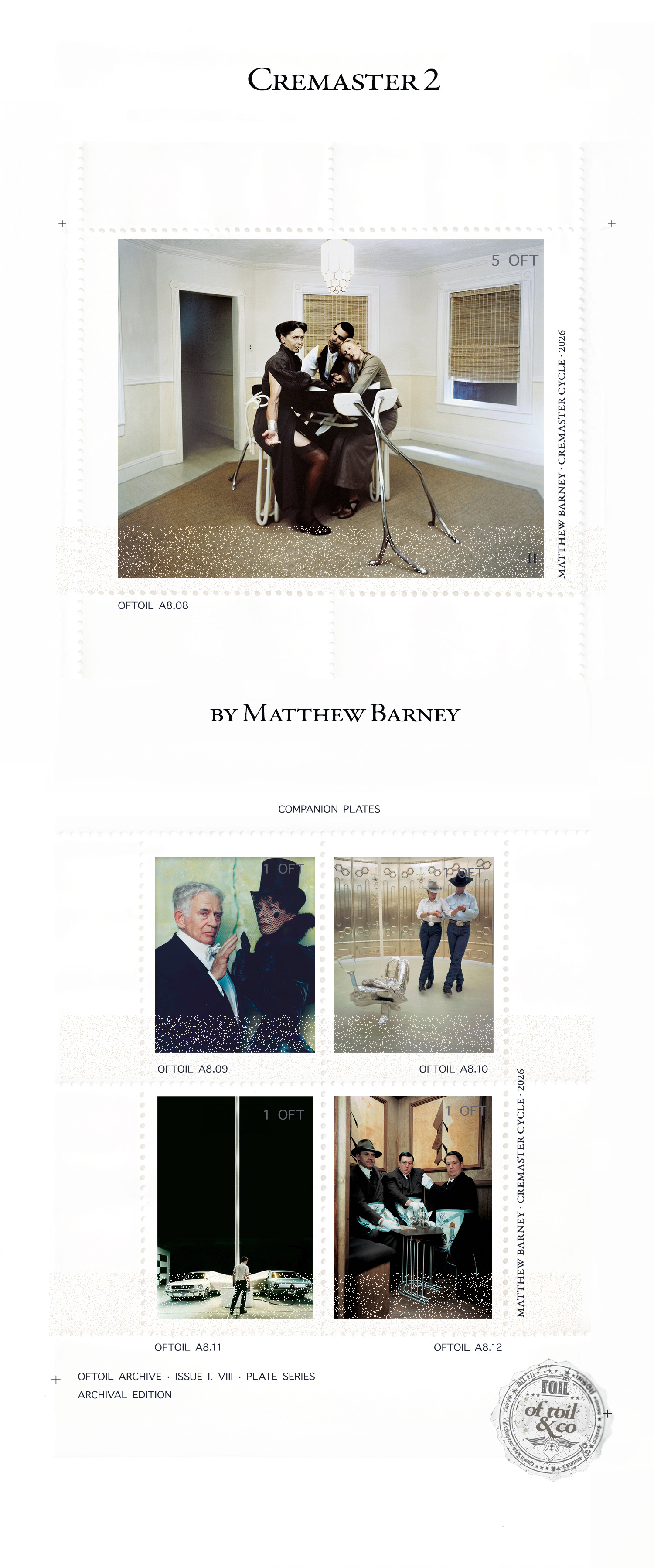 In the work of Matthew Barney, form is not fixed but negotiated. The Cremaster Cycle unfolds as a system governed by tension, constraint, and release—its logic drawn from the biological mechanism that raises and lowers, holds and lets go.