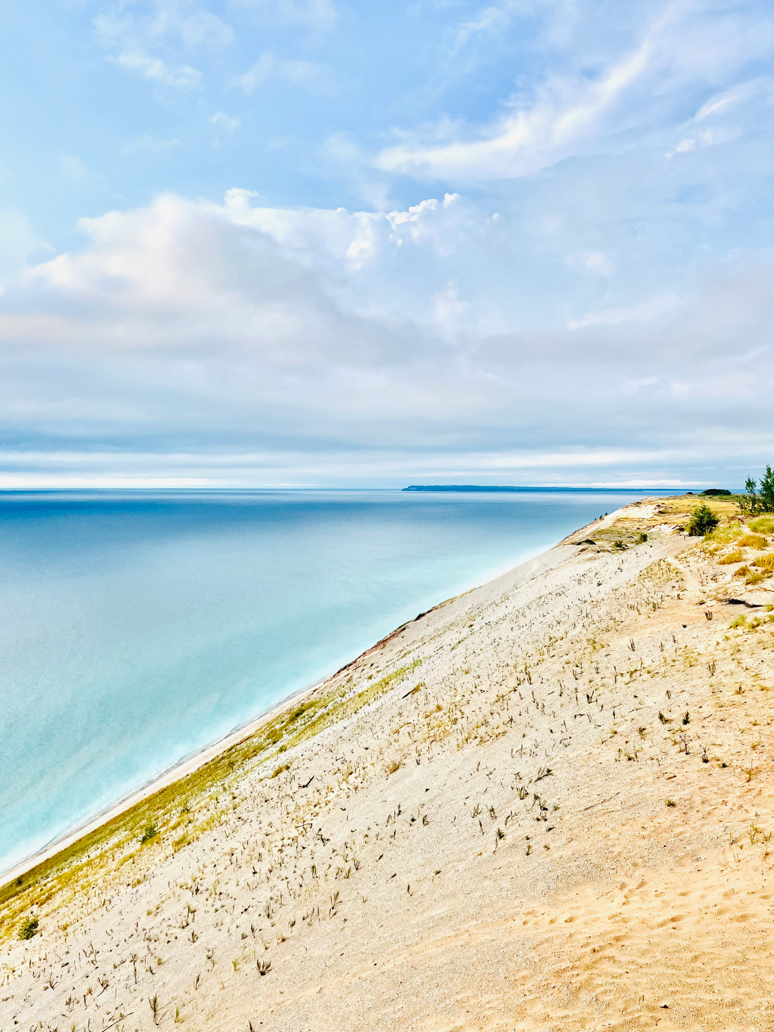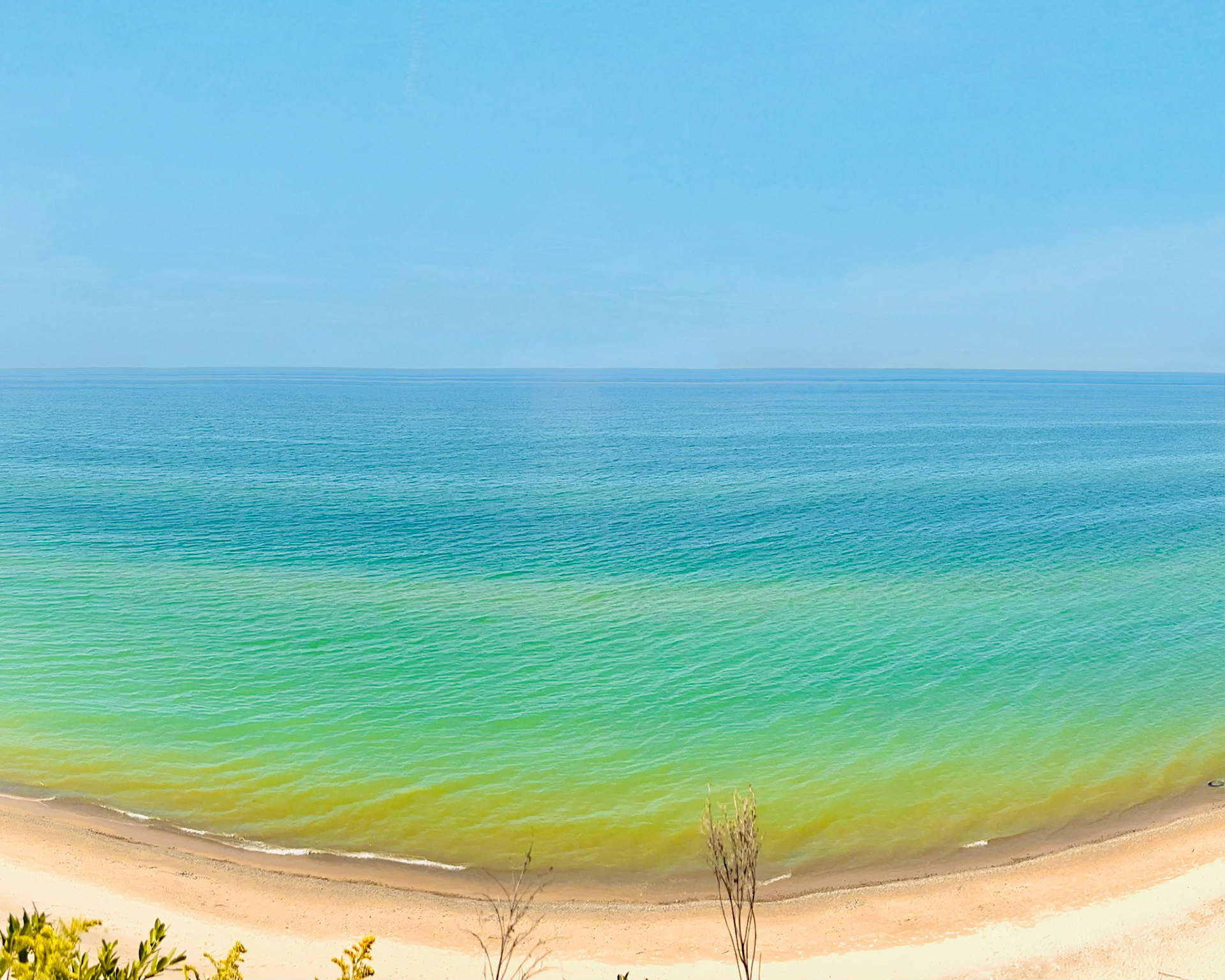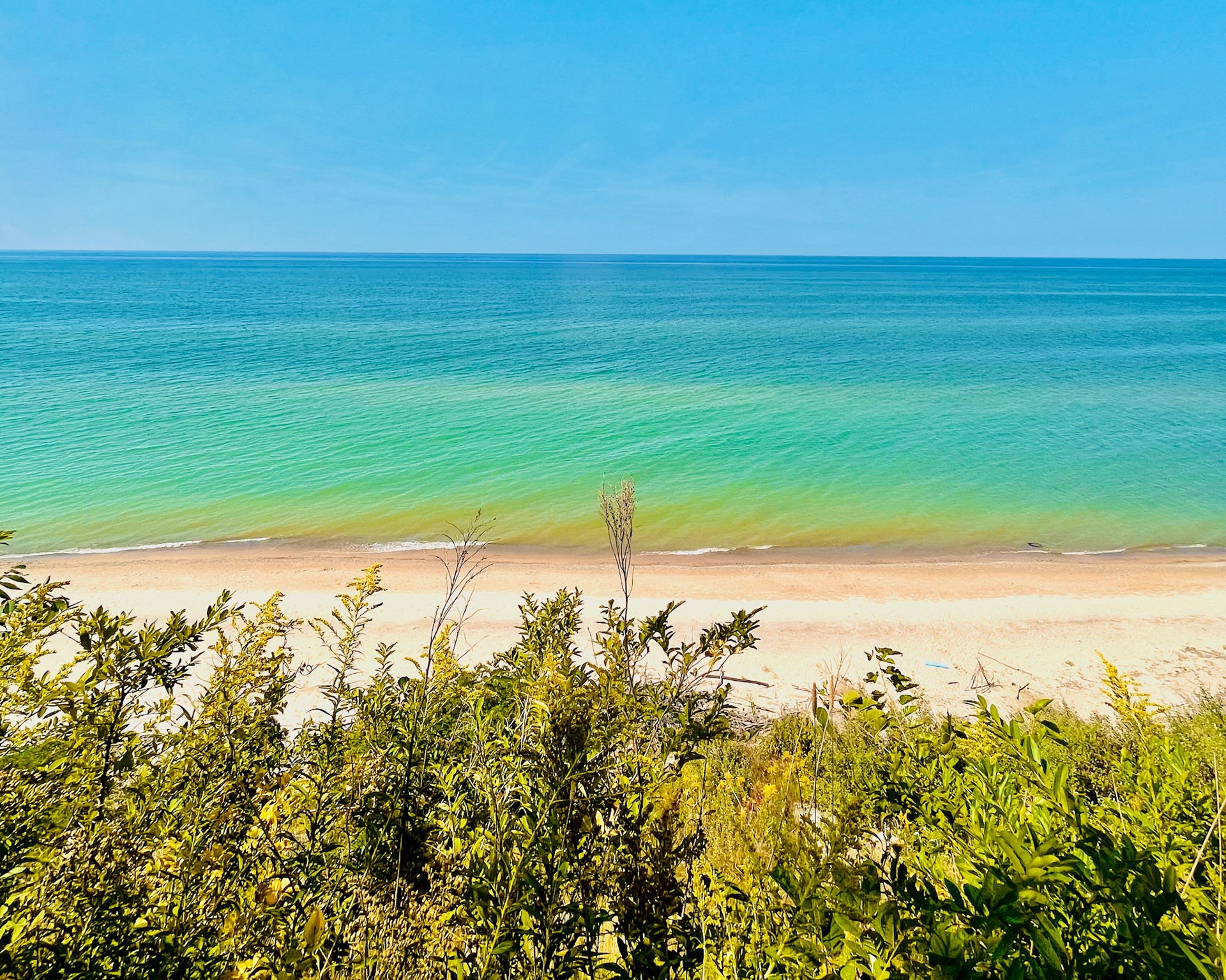 At Sleeping Bear, the horizon appears softened, diffused by the region’s shifting sands and mist—an atmosphere that feels almost coastal, as if the dunes are borrowing the language of distant oceans. Along Ludington’s western shoreline, the water sharpens into cooler blues, giving the horizon a crystalline edge; a line so precise it might have been drawn with a ruler. And at Castle Rock on Lake Superior, the horizon deepens into something more elemental: colder, darker, carrying the weight of geological time.