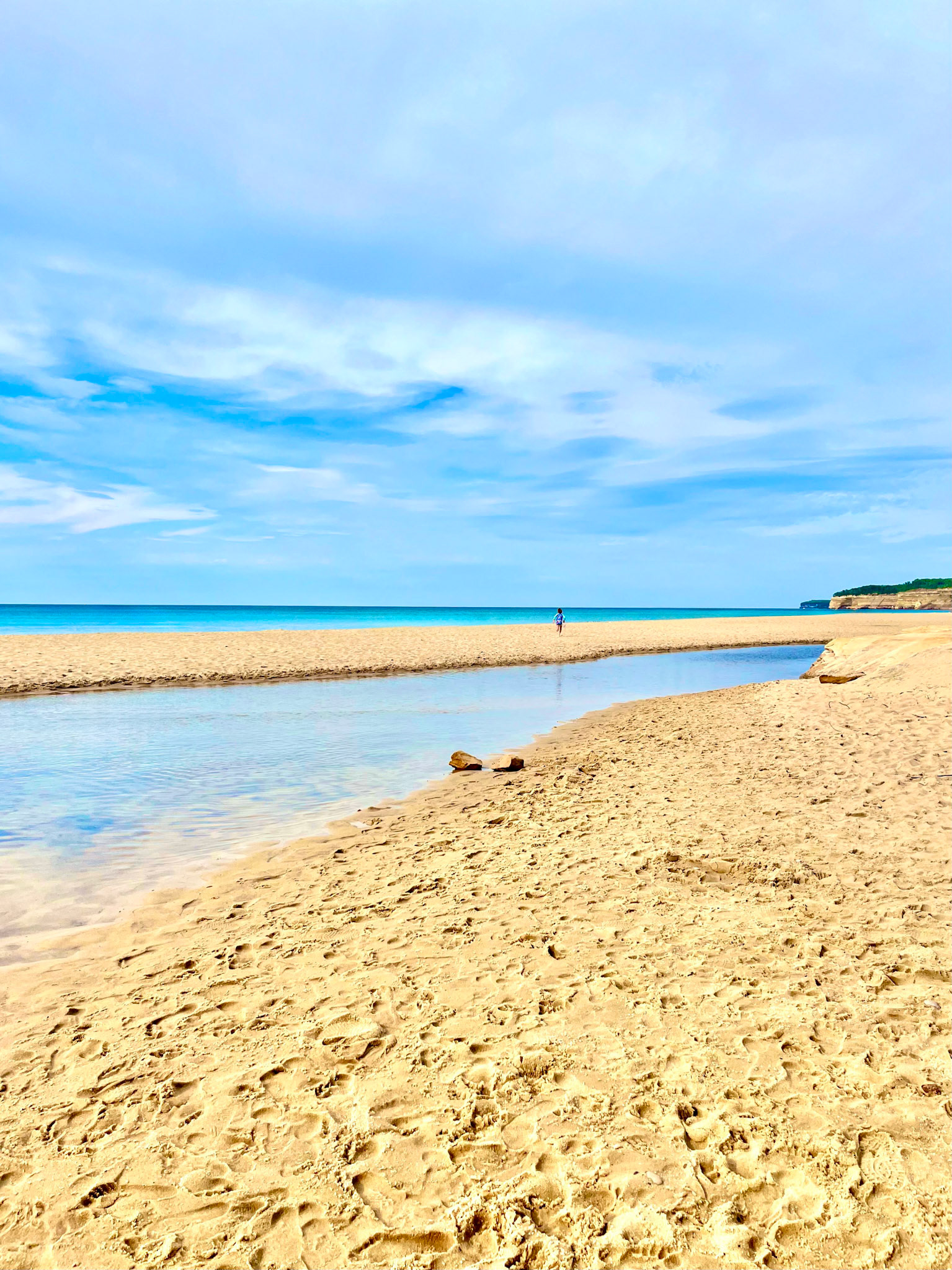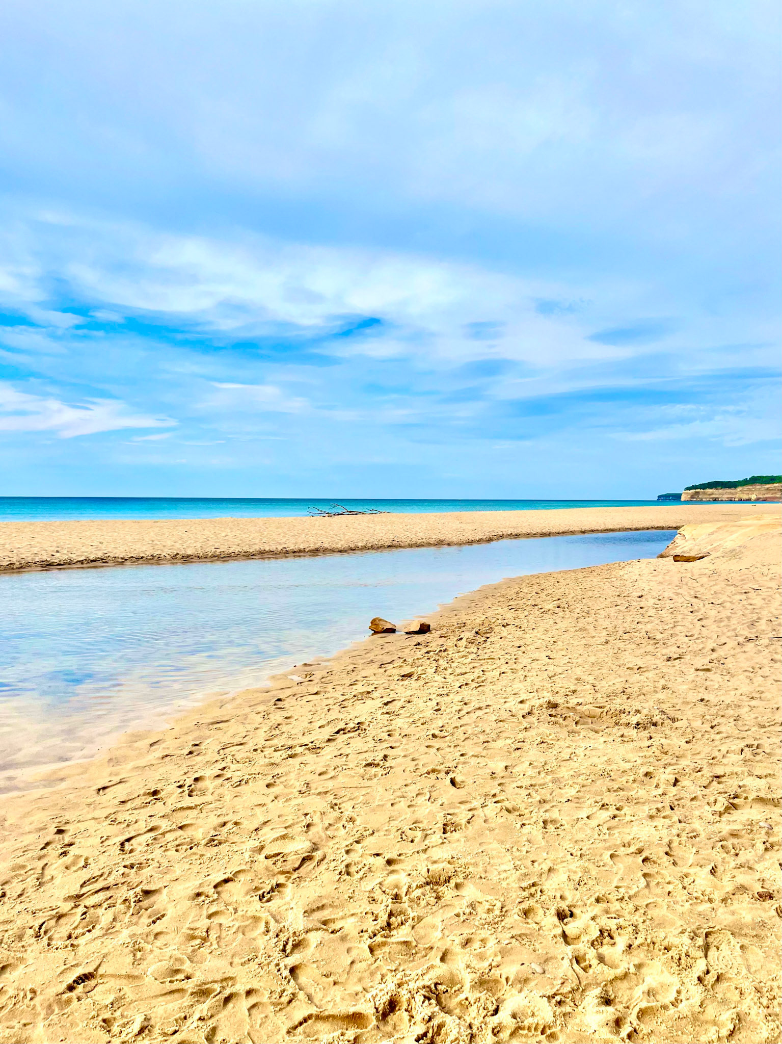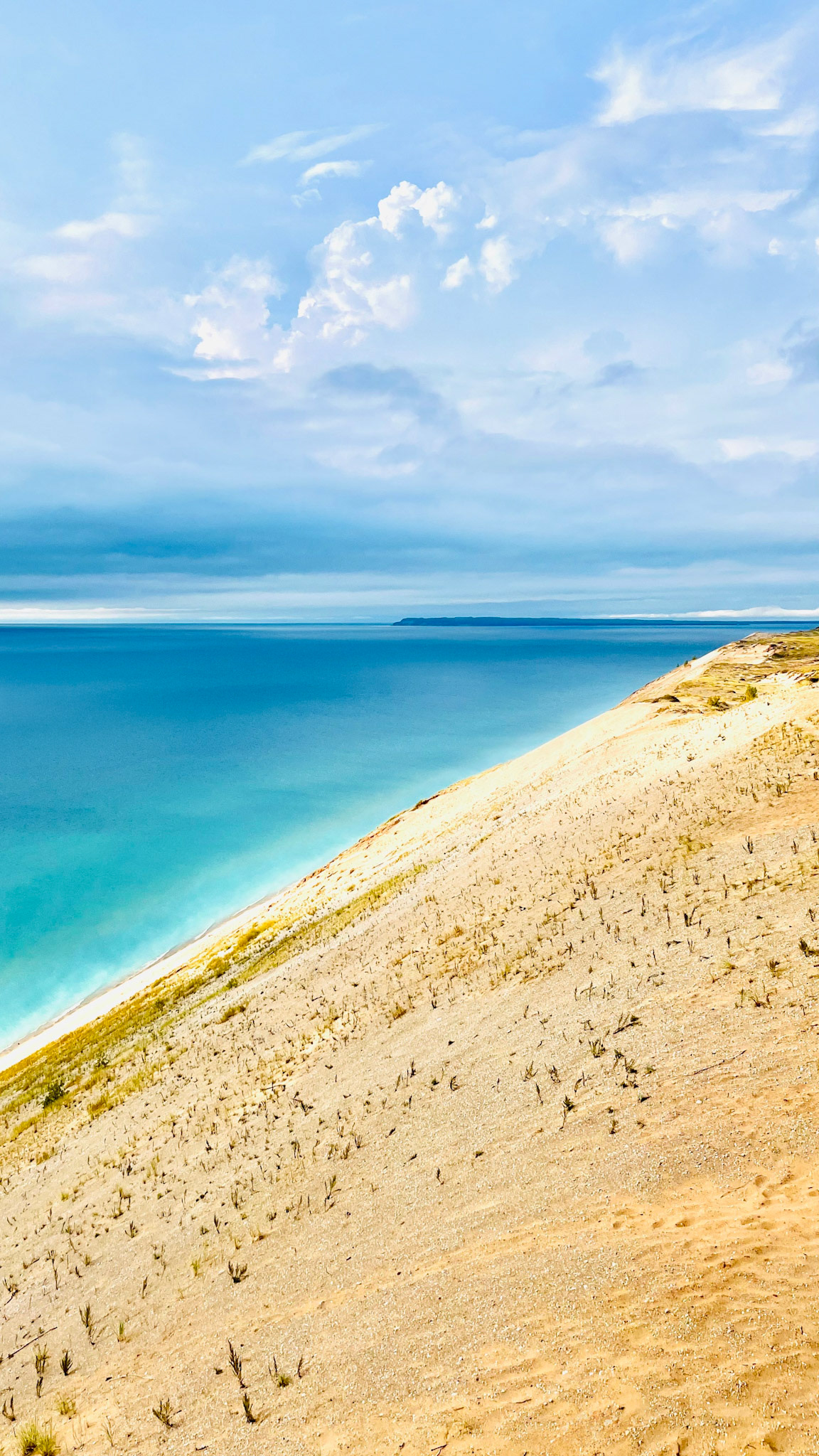 At Sleeping Bear, the horizon appears softened, diffused by the region’s shifting sands and mist—an atmosphere that feels almost coastal, as if the dunes are borrowing the language of distant oceans. Along Ludington’s western shoreline, the water sharpens into cooler blues, giving the horizon a crystalline edge; a line so precise it might have been drawn with a ruler. And at Castle Rock on Lake Superior, the horizon deepens into something more elemental: colder, darker, carrying the weight of geological time.