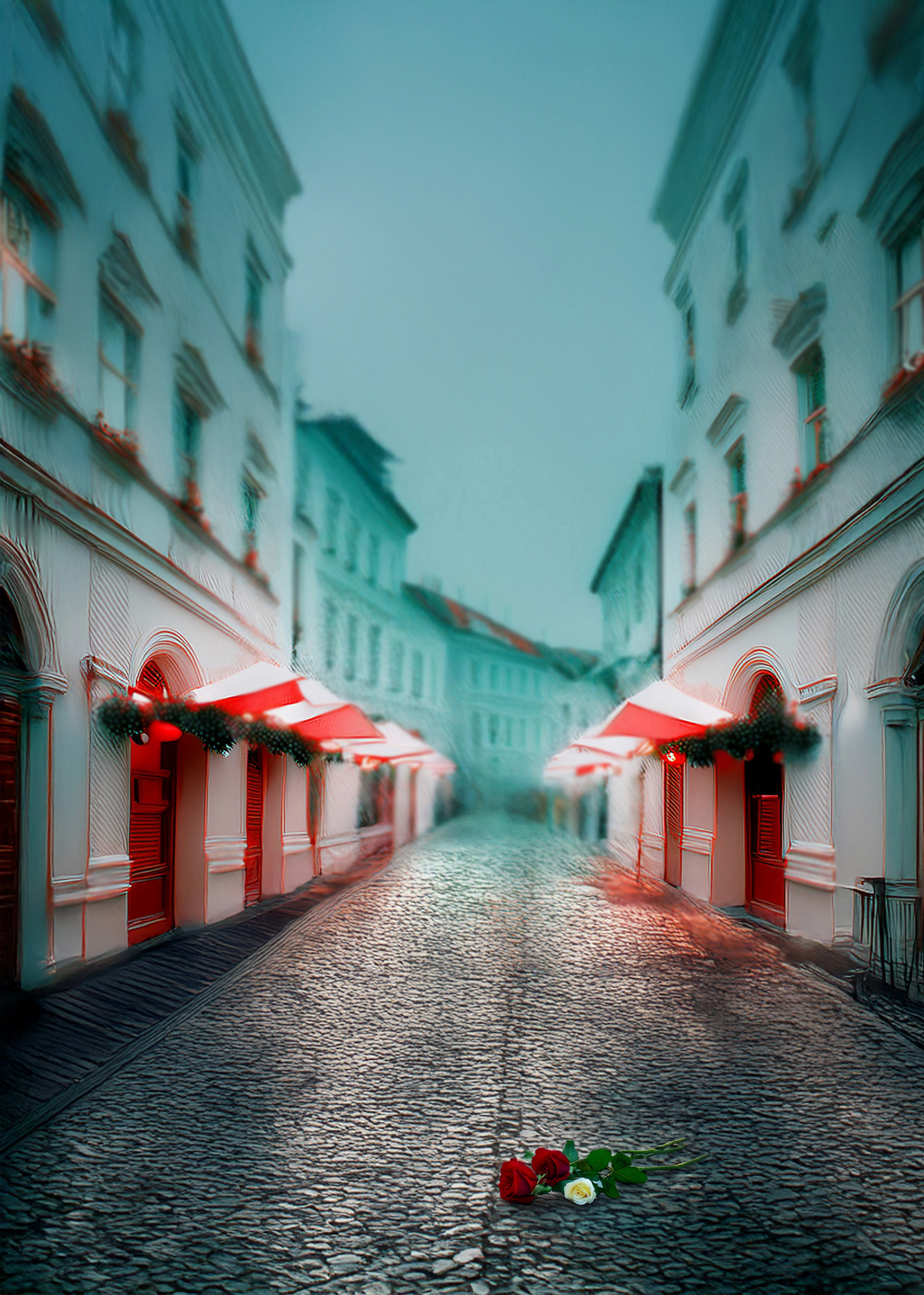 The illustrations emerged first — loosely, intuitively, without a fixed literary anchor — as visual meditations on pressure, suspension, tenderness, and landscape under strain. They carried the emotional temperature of a world already altered: petals falling like time, corridors turning into forests, figures veiled by flowers, open rivers flowing after something unnamed has passed.