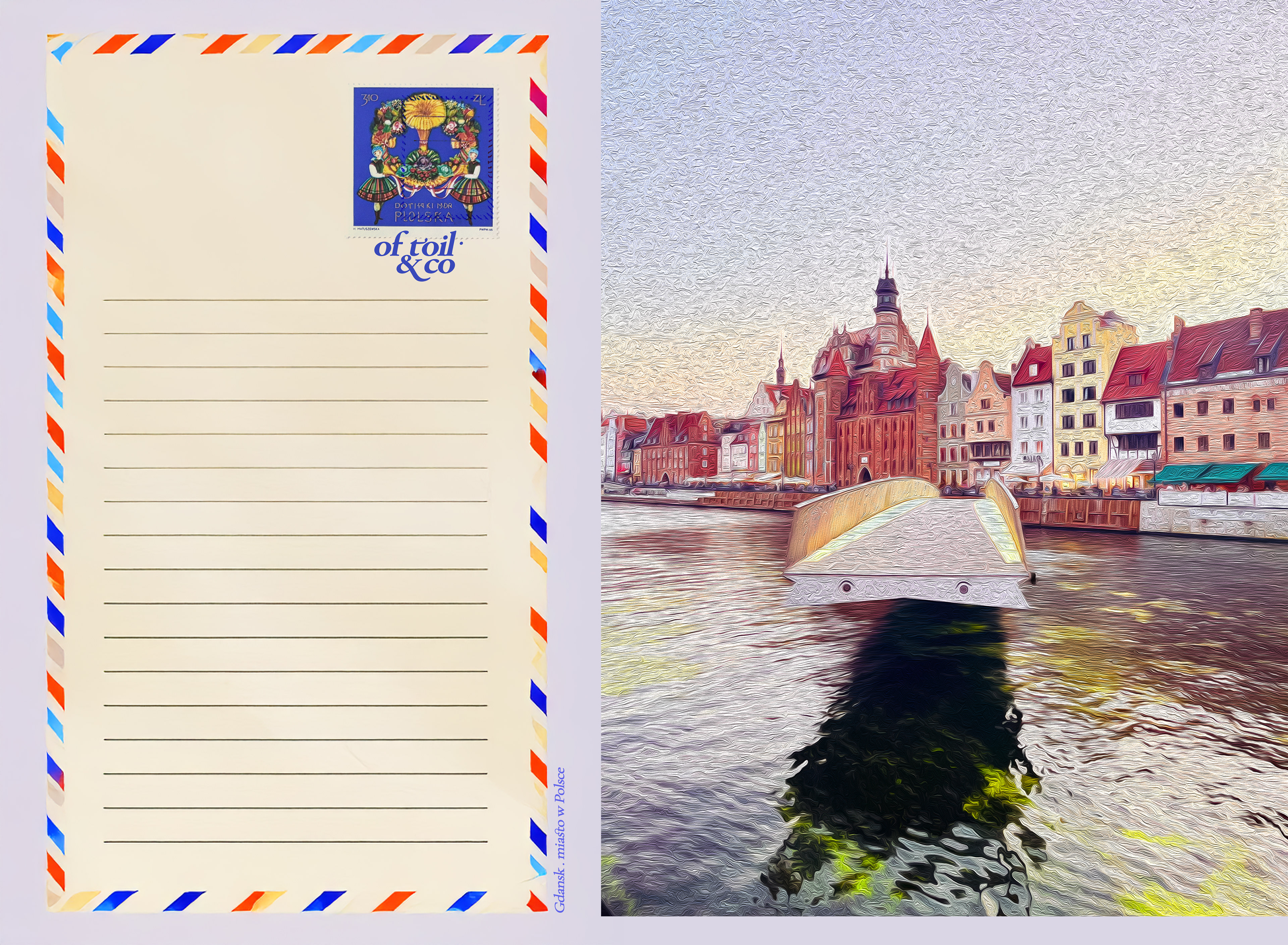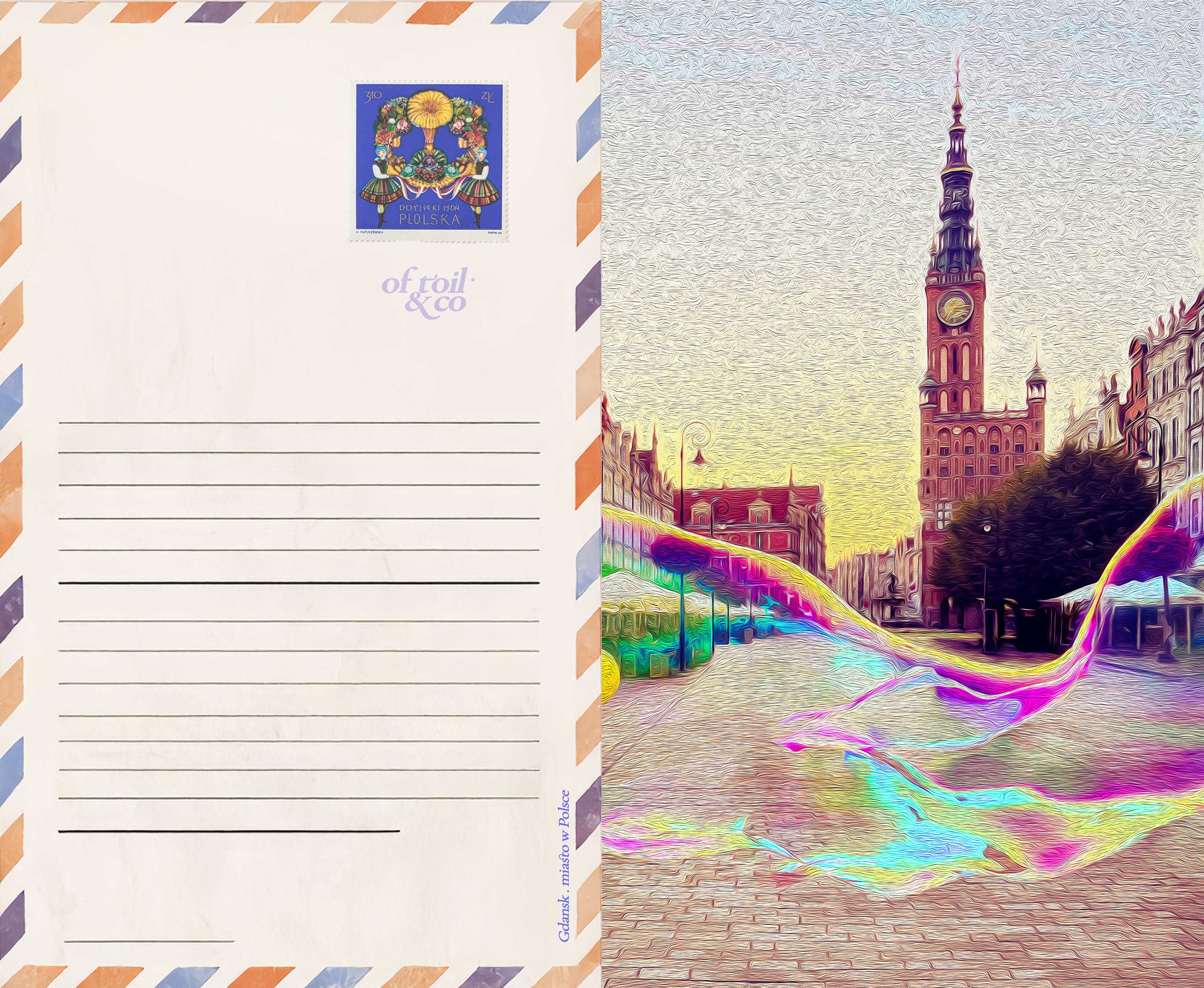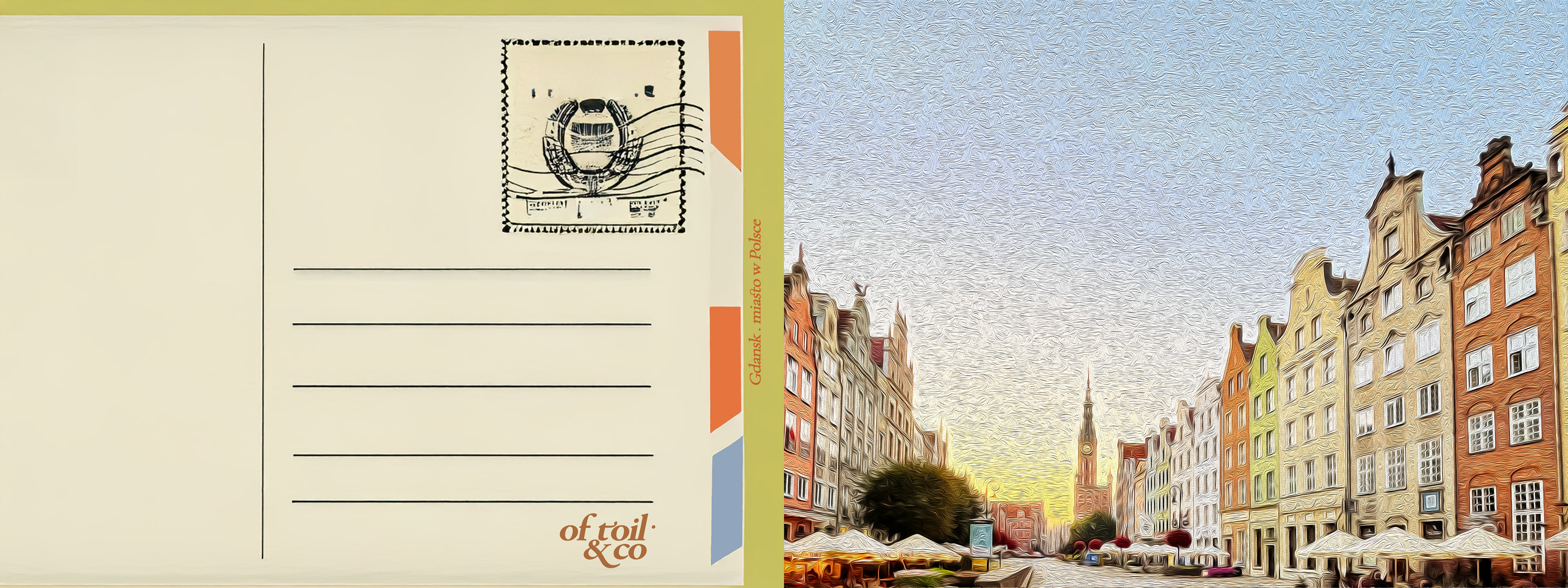 OfToil creates bespoke postcards for towns, regions, countries, brands, family events, or special occasions — designed with editorial precision and crafted aesthetic care. Each postcard blends classical composition with contemporary storytelling, capturing the spirit of a location or moment in collectible form.