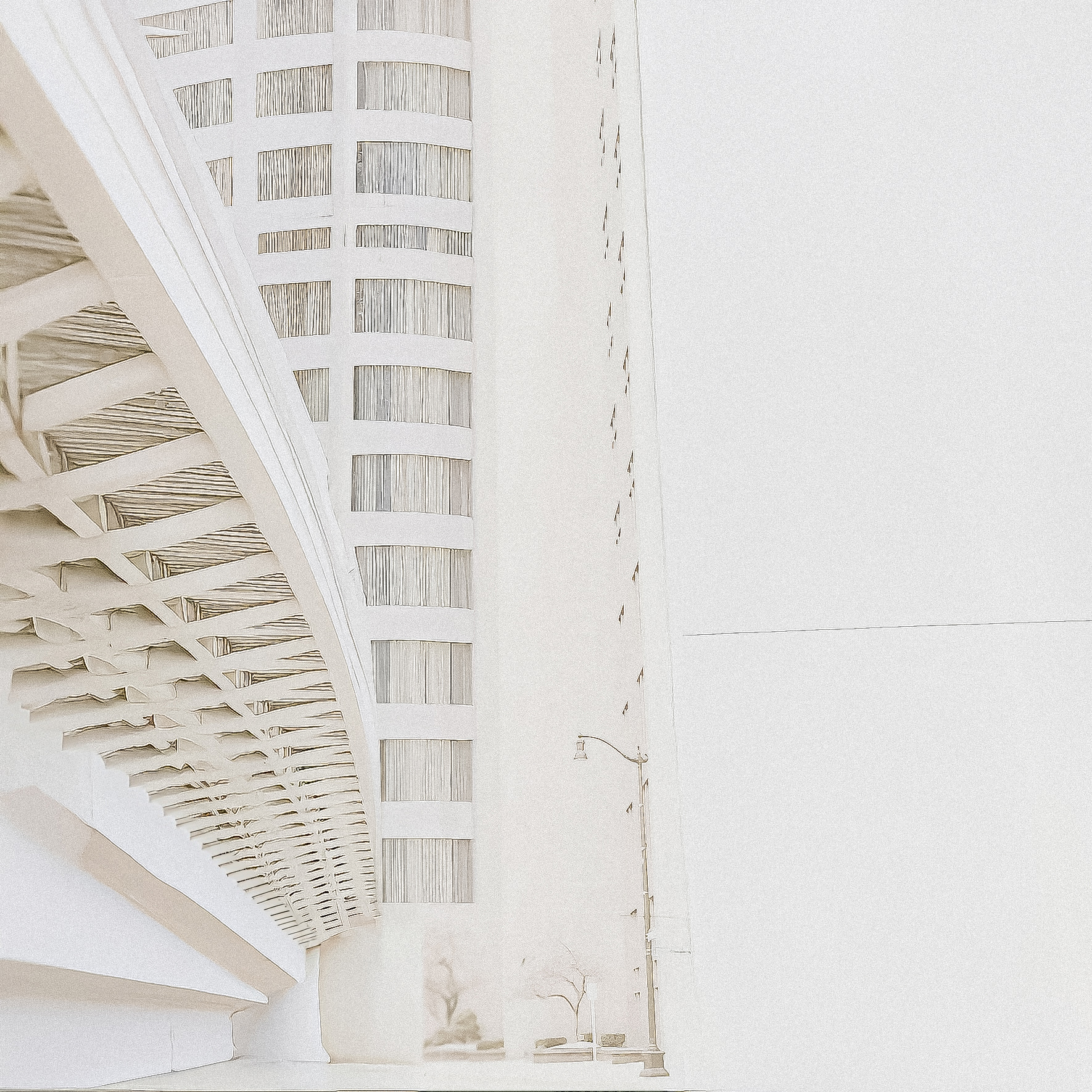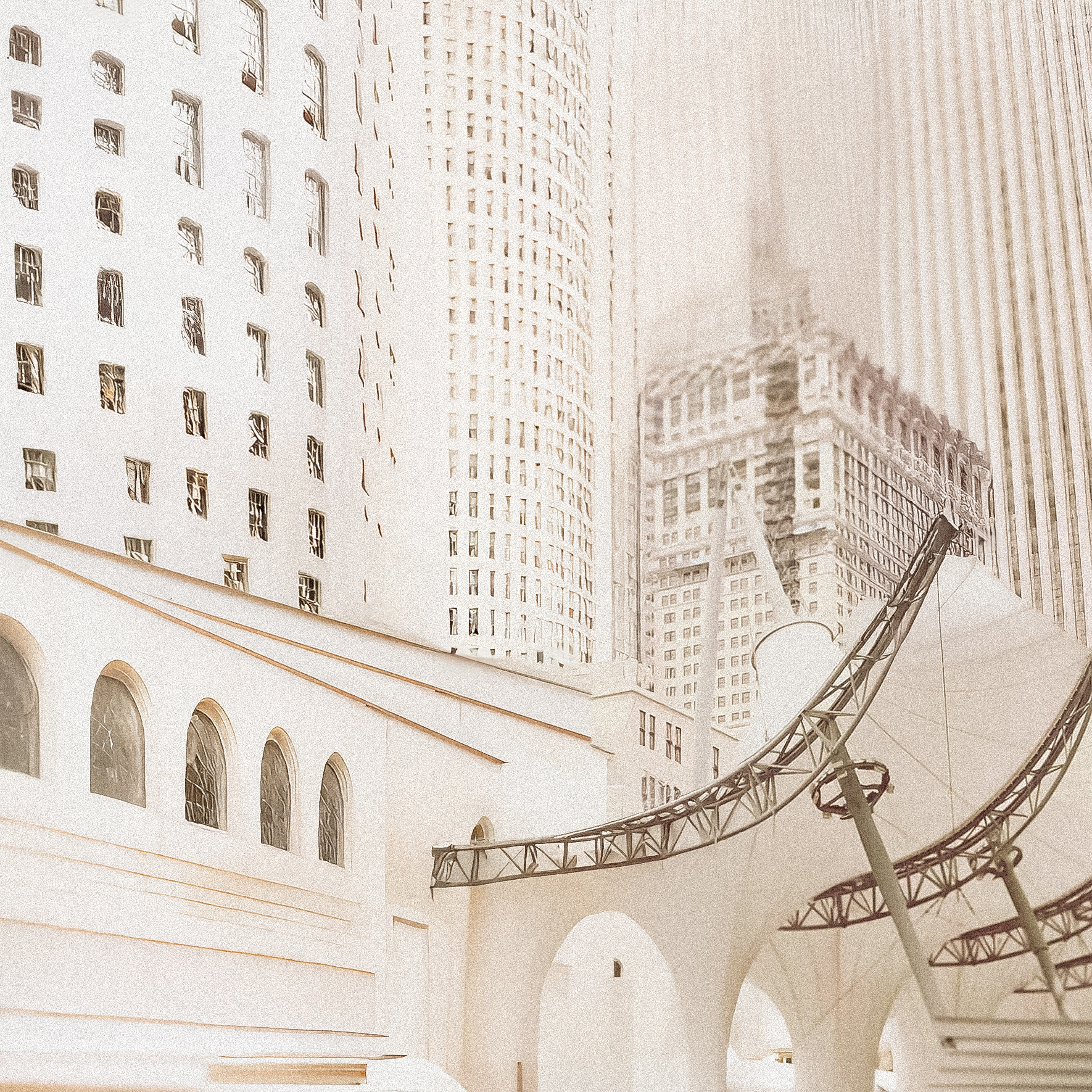 This limited edition series unfolds at the threshold between the built world and its afterimage. Originating from photographs of real urban structures, the images have been gently expanded into a quieter, more speculative territory—where architecture sheds its certainty and becomes atmosphere. Familiar forms stretch, repeat, and dissolve into pale fields of light, as if memory itself were doing the reconstruction.