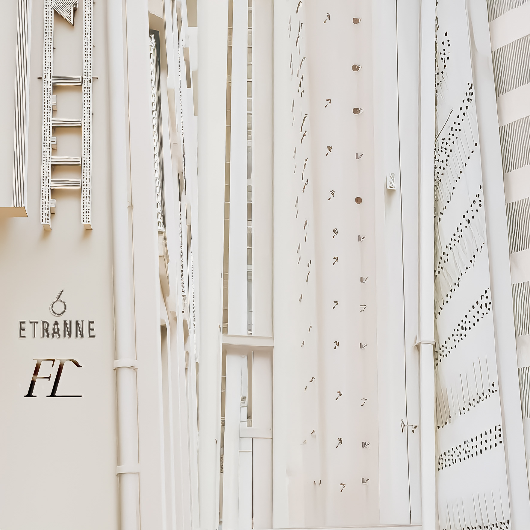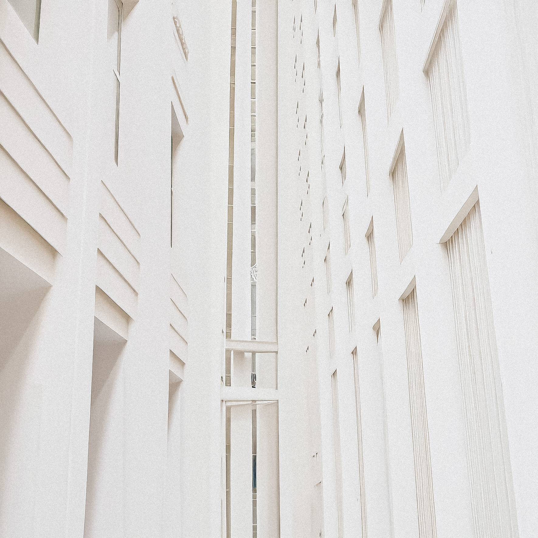 The city here is not depicted as a place of movement or noise, but as a presence held in suspension. Facades rise like veils rather than walls; windows become rhythms instead of apertures. Verticality dominates—towers elongate, streets narrow into corridors of air, and perspective folds inward. The palette is restrained, almost ascetic: whites, softened creams, muted stone, traces of gold and dust. This reduction of color sharpens attention toward texture, proportion, and silence.