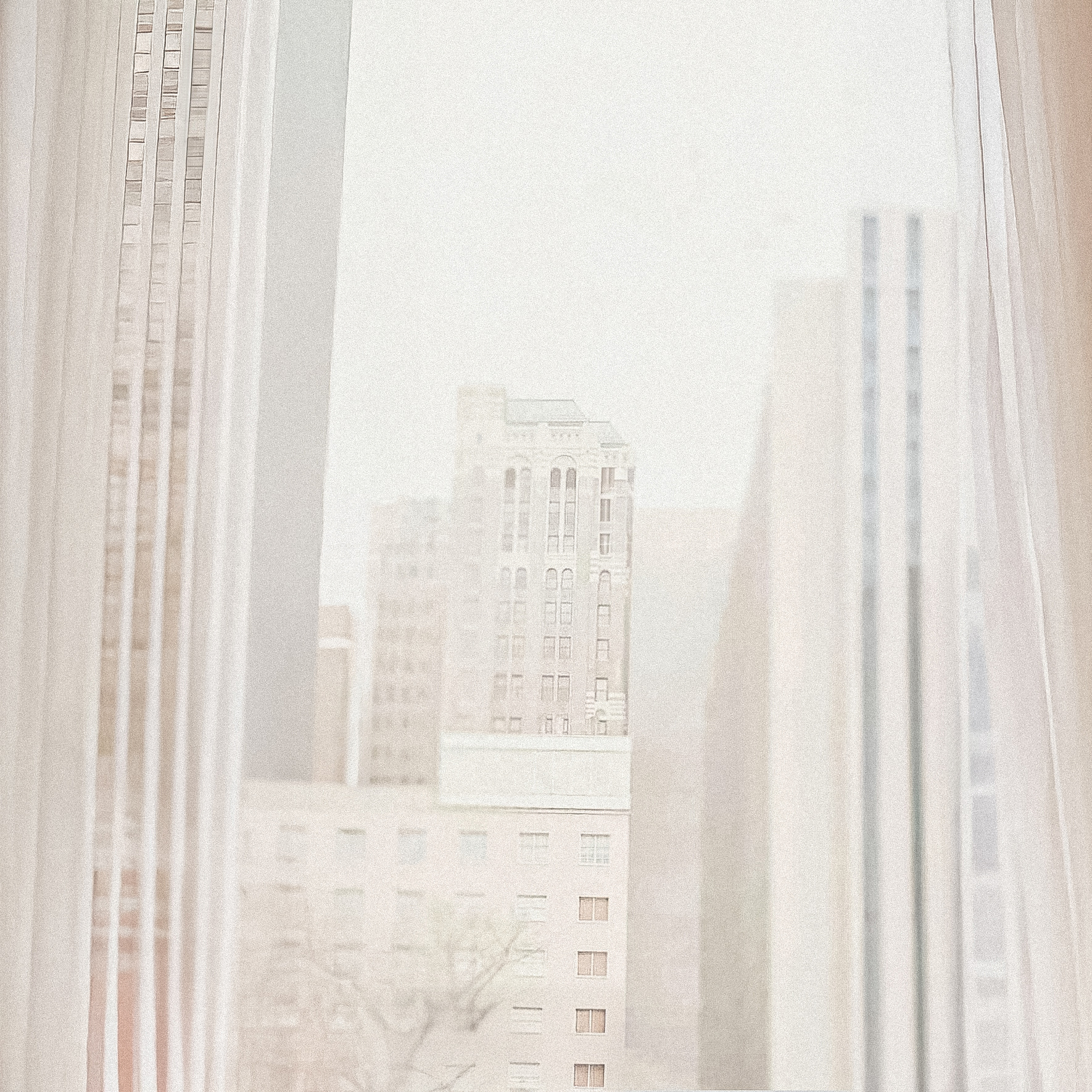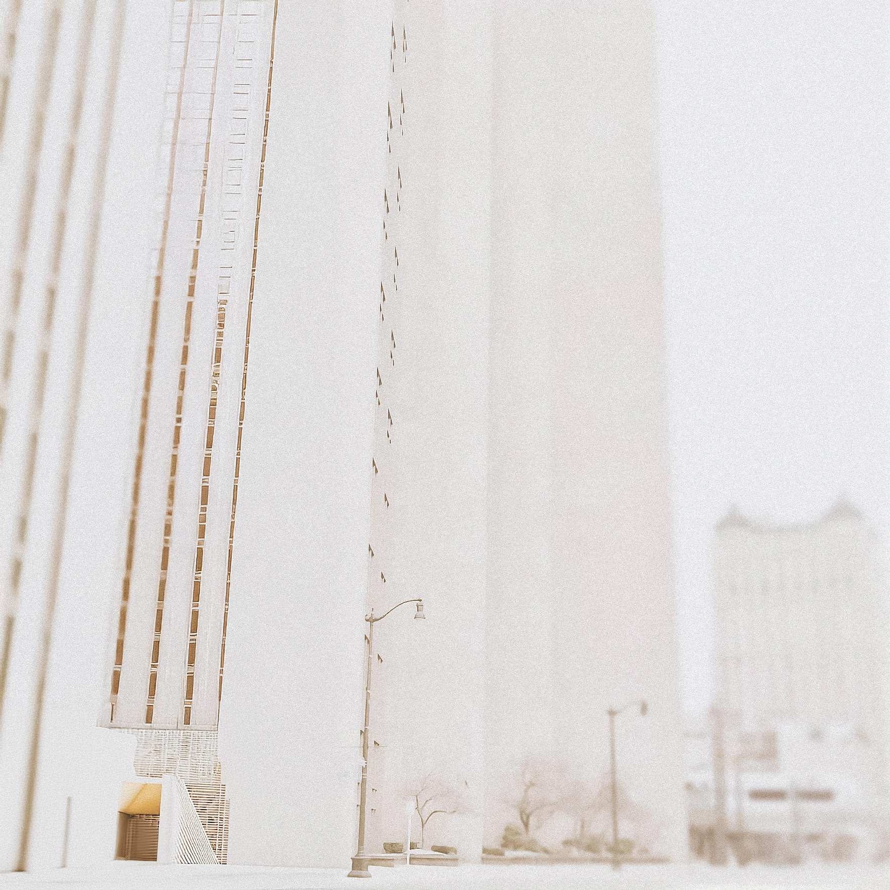 Shot in a soft, desaturated palette, each scene becomes a quiet document of place—architecture blurred by winter light, street corners softened by haze, the melancholy geometry of city blocks in morning fog.