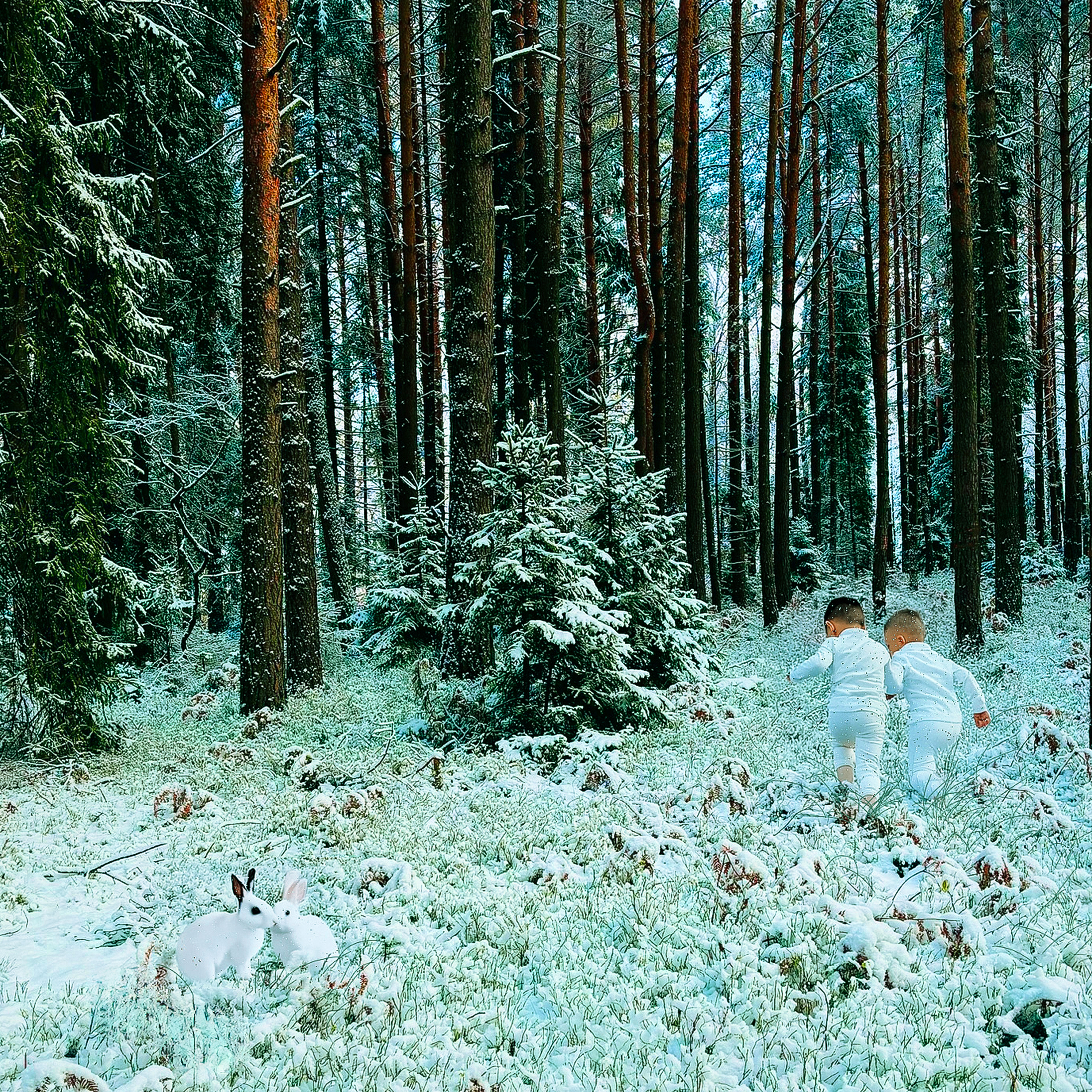 Deep within the grove, twin boys ran between the trees, their laughter echoing faintly as they chased white rabbitsdarting across the snow. They did not see the torches or the doves; perhaps they belonged to another layer of the world, one that dreamed alongside this one.
